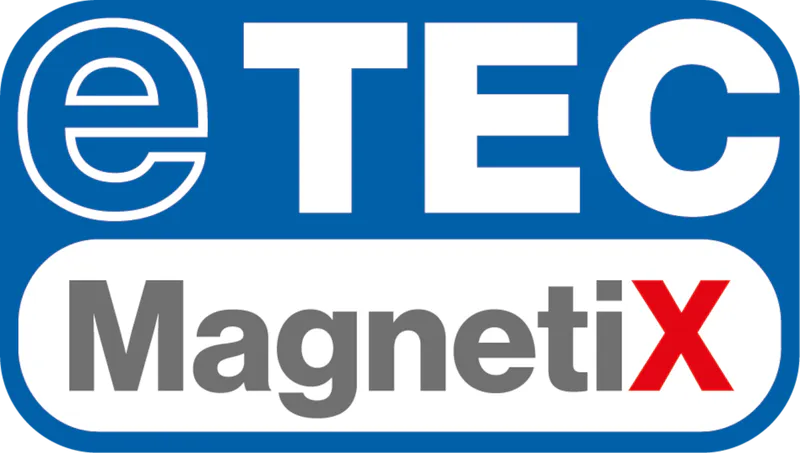 A magnetic material with a calendared PVC surface on one side, suitable for use in a variety of applications with flat or slightly curved surfaces.