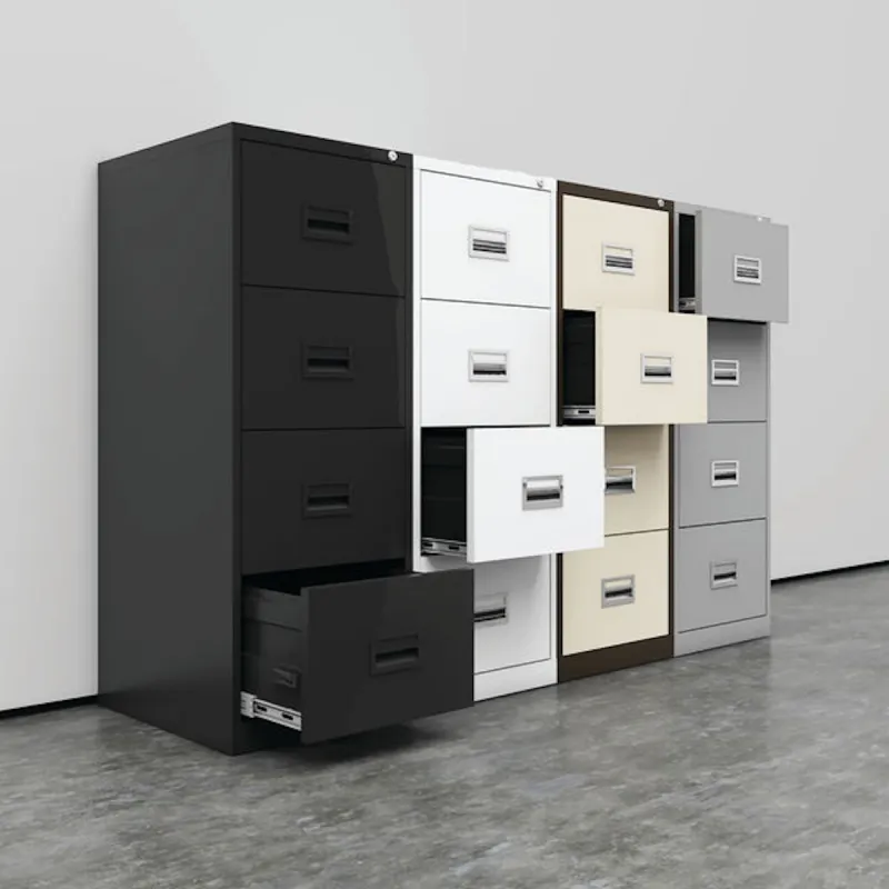 With drawers that are 100% extendable for full access to the contents, these 4 drawer filing cabinets have a fully welded construction and lockable doors for use in virtually any environment. Suitable for use with both A4 and Foolscap files, the unit also benefits from an anti-tilt system that only allows one drawer to be opened at a time and has plastic inset drawer handles incorporating a card holder for easy identification and labelling. Each drawer has a weight capacity of 40kg. Contents not included.